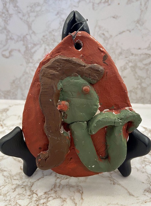 One of my absolute favorite Christmas ornaments is my mermaid. I was fairly obsessed with mermaids, and since there was very little mermaid merch available to a young girl in the 70's, I had to create my own. I drew them constantly, but there came a day in 3rd grade when we were given the opportunity to make a Christmas ornament out of clay. I immediately went to work creating my masterpiece, using ten times the amount of clay intended for this project. The result is my beautiful, 4 lb., indestructible, Christmas Mermaid ornament. She is set in a profile pose (please don't confuse her pearl earring as a wonky second eyeball), with flowing mud-brown hair, zombie-green skin, and orange eyes. Arms would have been nice, but space and time limits dictated a strong focus on the construction of her graceful (and very proportional) mermaid tail. This treasure inspired many jokes and much laughter from family as, year after year, I sought the strongest branch on the tree to host my lovely mermaid. She continues to be a Christmas favorite but is no longer allowed to harm innocent pine trees and now rests peacefully in a small, but sturdy, wooden easel on my mother's marble countertop.