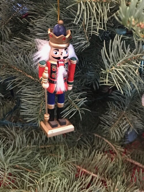 Growing up my mom was a ballet dancer and teacher. Each year, from as early as I remember, the Christmas season was enveloped with dress rehearsals, costume sewing, and all things Nutcracker! Being the son of a ballerina I often found myself thrust onto the stage as either the annoying little brother, Fritz, or as a tiny mouse, or even the mouse king! The nutcracker has become a symbol of good memories from childhood. And so, as I see it hanging in the tree, it brings a smile to my face.