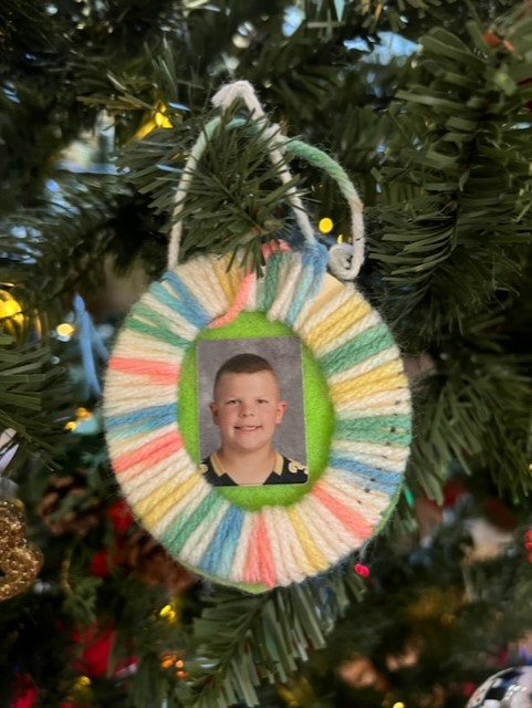 This is my favorite ornament... It is a picture of my little brother it is my favorite because it always makes me laugh when I pull it out of the box, he looks like a chubby John Cena.