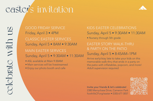 Activity books will be available at our Easter services for kids that wish to attend service with their families.
